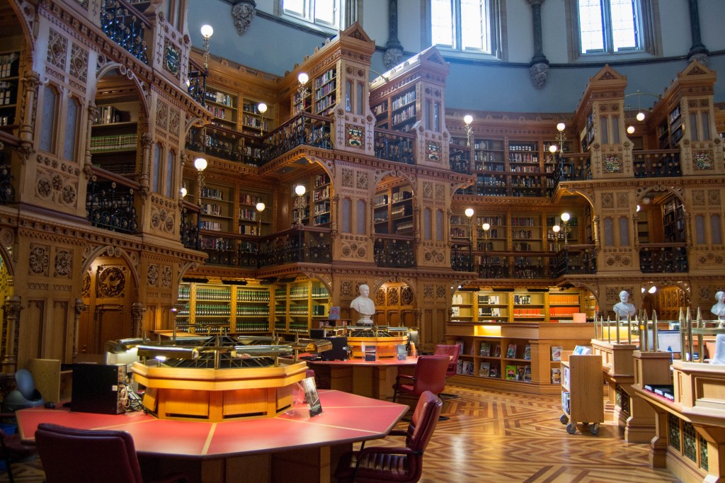 Attention: L’édifice du centre du parlement est actuellement en rénovation. Il n’est donc pas possible de le visiter (donc la bibliothèque et la vue ne sont pas accessibles). Il reste cependant possible de visiter gratuitement le Sénat et la Chambre des Communes qui ont été récemment rénovés. Pour plus d’infos, cliquez ici!