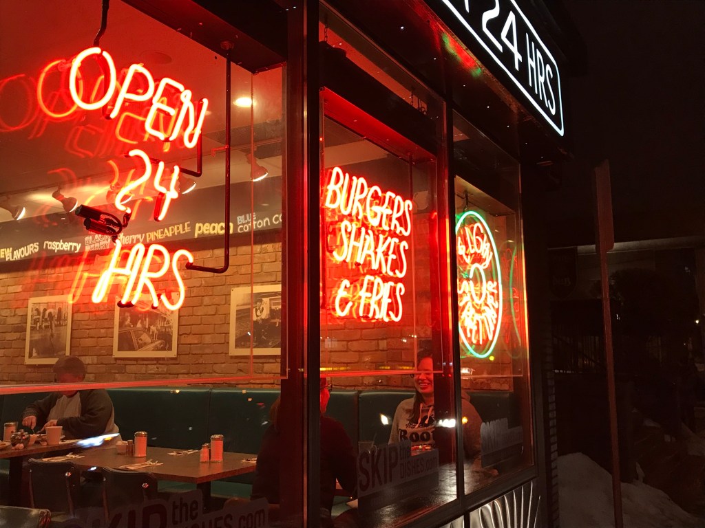 Si je n’étais pas passée pour une gourmande, je l’aurais mis en numéro 1 hihi! Si vous voulez goûter à une vraie poutine, c’est sans aucun doute chez Elgin Street Diner que vous devez aller! Non seulement leurs poutines sont super bonnes, mais en plus elles sont très bien servies et vous pouvez y aller à n’importe quelle heure puisque ce « diner » est ouvert 24h/24. Et puis, la déco est vachement typique, très à l’américaine! On adore! Si les poutines, c’est pas trop votre truc, pas de souci! Ils servent pleins d’autres choses!