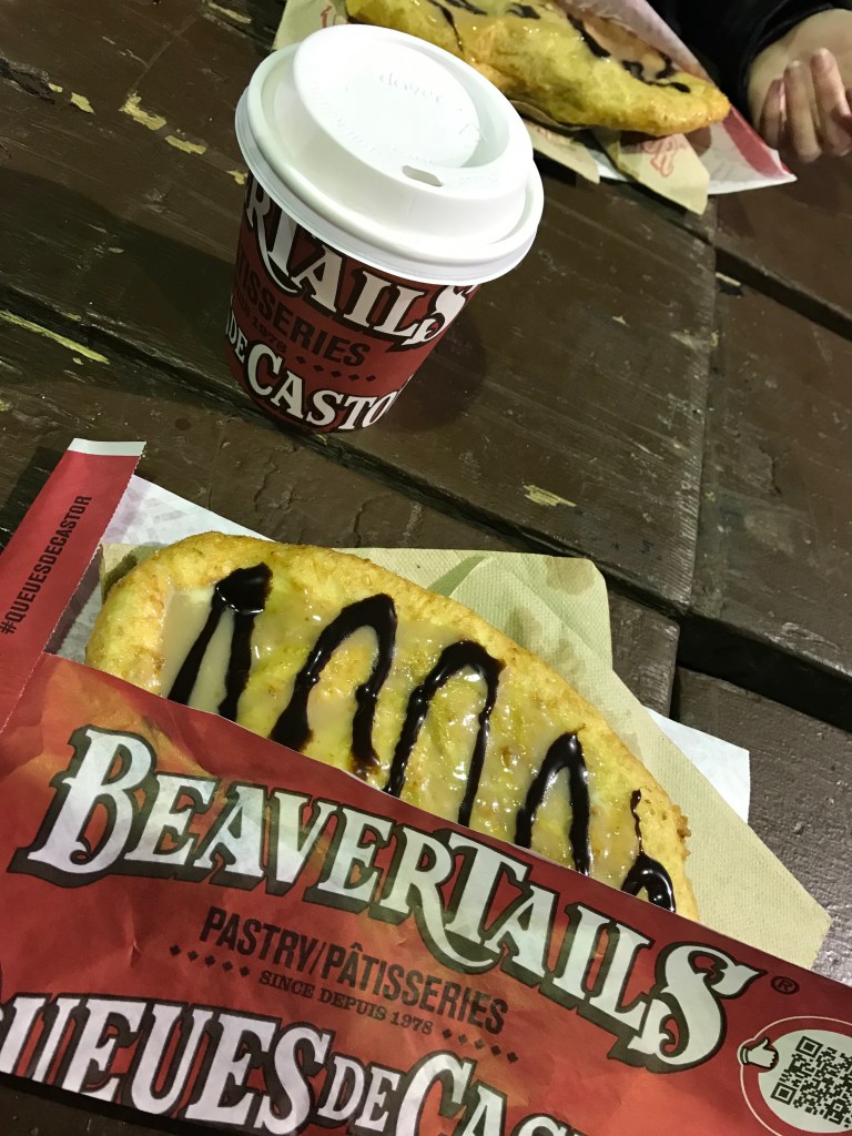 Et c’est aussi au Marché By que j’ai goûté ma première queue de castor (ou beavertail en anglais)! Alors non, ce n’est pas une vraie queue de castor (pauvre bête)! Mais c’est bien une pâtisserie à base de pâte frite qu’ils étirent pour qu’elle prenne la forme d’une queue de castor! C’est gras, mais qu’est-ce que c’est bon! En on en mange à toutes les sauces!