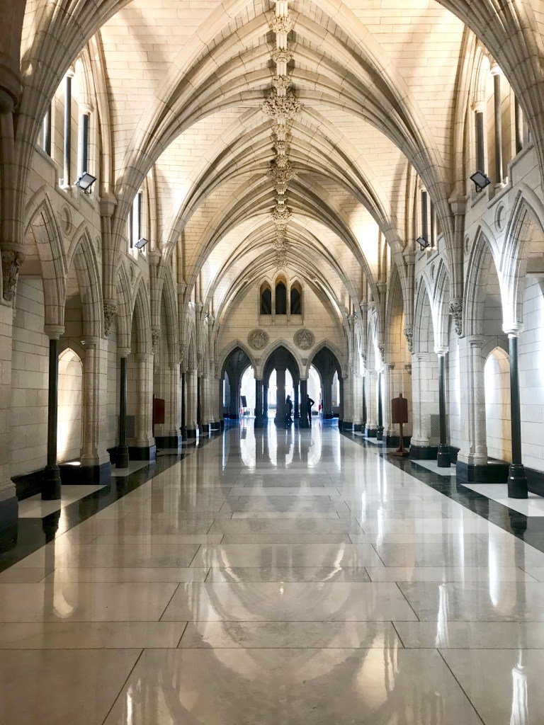 Il va de soi que s’il y a un bâtiment politique et historique à visiter dans l’Est du Canada, c’est quand même le parlement canadien. La visite guidée est gratuite! Il suffit de prendre son ticket qui nous donne une heure de visite en ligne. C’est intéressant de voir les différentes chambres et anti-chambres mais surtout, j’ai été épatée par la beauté de la bibliothèque! Celle-ci est la seule pièce qui a été épargnée lors d’un grave incendie en 1916. Et puis, si vous ne le visitez pas pour l’histoire et l’architecture, montez au moins pour la vue!